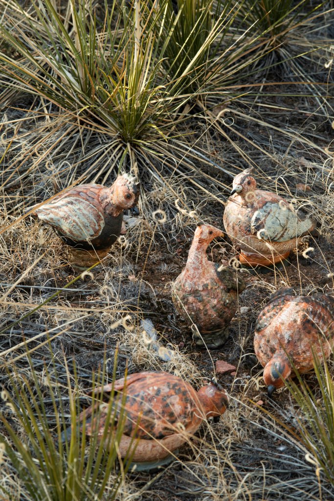 The aerial perspective leaves me with a sense of family and of connection to our loved one, Irene. Knowing the birds were heading out to Texas, Arizona, Oregon, Maryland, Massachusetts, Washington and California (one remaining in New Mexico) brought joy. But nice as well to see the abstraction of bodies, wings, tails and berets from above.