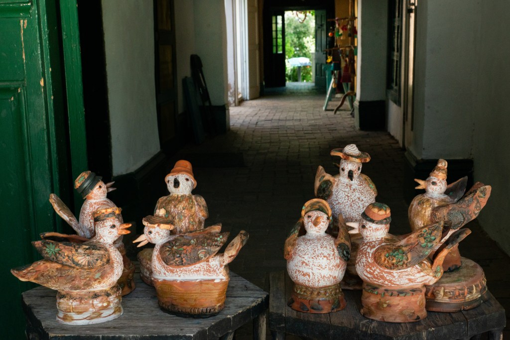 They are chatting in the beloved and historic El Zaguán hallway leading to the glorious porch and garden. This show was dedicated to my friendships, sisterhood and beyond that come in threes. I adore that grouping. You have a third to shake things up or give another perspective. My goal was to have them interact, tell stories, take us back and/or offer support. Wondrous for me to express myself in earthenware clay, sig and glaze to share the love and life long connections we make. El Zaguán Gallery and Shop suit my work on many levels. I am grateful to show my ceramics here.
